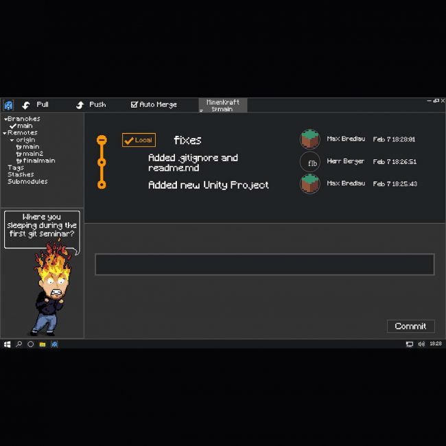 This atypical narrative game uses a GIT mimicked interface to tell a story. In the course of the game, various programs are unlocked that provide further text modules in the GIT client. The dialog then takes place via the GIT commit messages from the player himself, but also other characters when they respond.